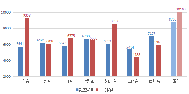 本年度在广西人才网中,用人单位提供驻国外的职位主要集中在越南、菲律宾、柬埔寨等东南亚国家以及非洲国家。驻国外的职位平均薪酬达到10103元/月,期望在国外工作的求职者对薪酬的要求达到8756元/月。